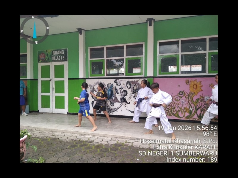 Siswa SD Negeri 1 Sumberwaru setiap sore hari rutintias latian Ekstrakurikuler Karate yang bertempat dihalaman Sekolah yang dipandu oleh pelatih.